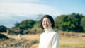草木の中で白いセーターを着た真田雪子が立っている写真 メディア掲載